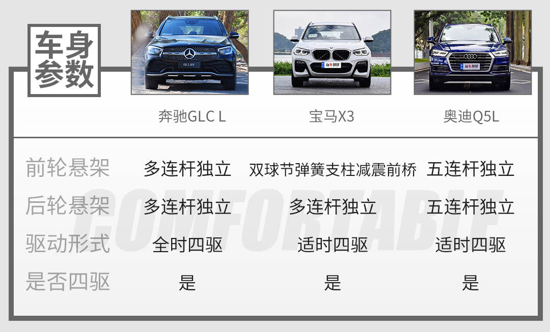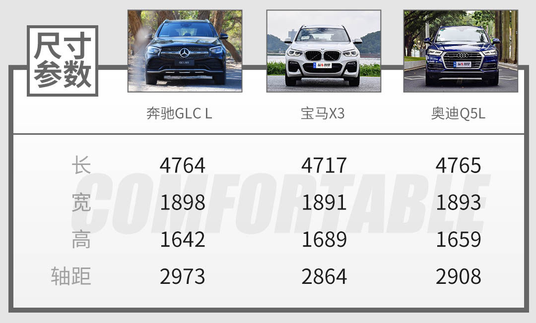 加长100mm以后,GLC L的轴距达到了2973mm,碾压它的对手宝马X3和奥迪Q5L,因此后排空间是GLC L相比较X3的优势所在,空间表现与Q5L处在同一水准。