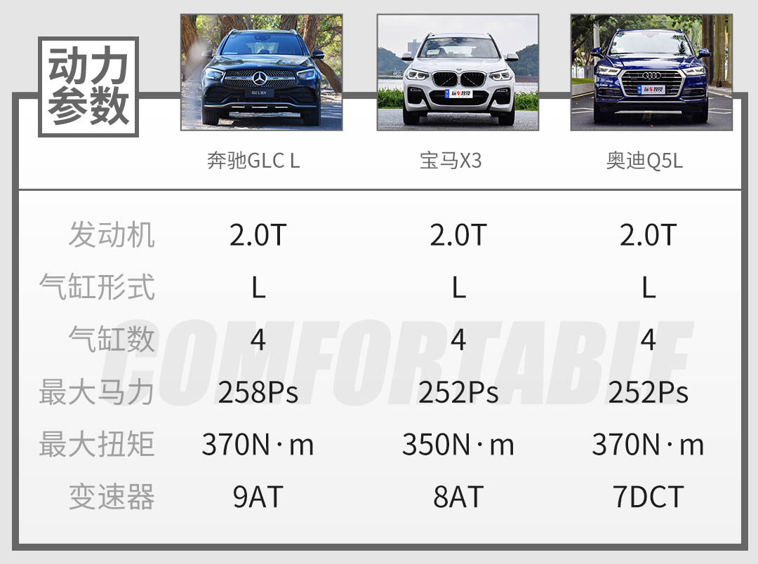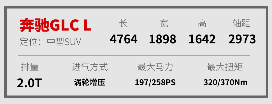 中期改款GLC L换上了全新的M264系列2.0T发动机,按照高低功率的区别分为了260和300两个动力,260车型使用了197马力/320牛米的低功率发动机,官方百公里加速8.4秒,而300车型则使用258马力/370牛米的高功率发动机,官方百公里加速6.9秒。