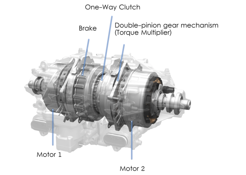 奥迪以前不是在RS5后桥配了非常复杂的差速器,实现了后桥矩矢量控制吗?本田爽快一点,直接在前桥电机上玩扭矩矢量控制,当然这样做控制难度比较大(前桥特殊)。