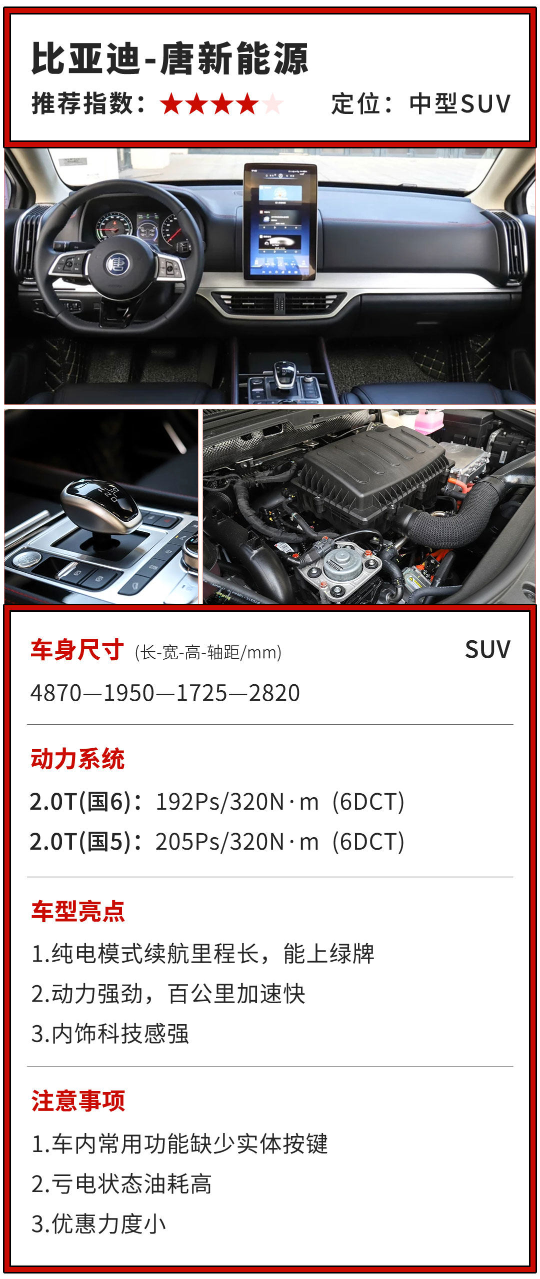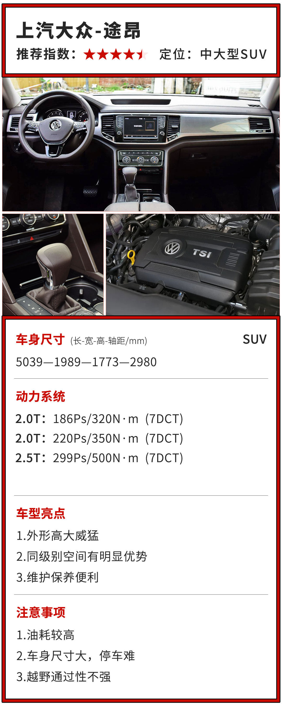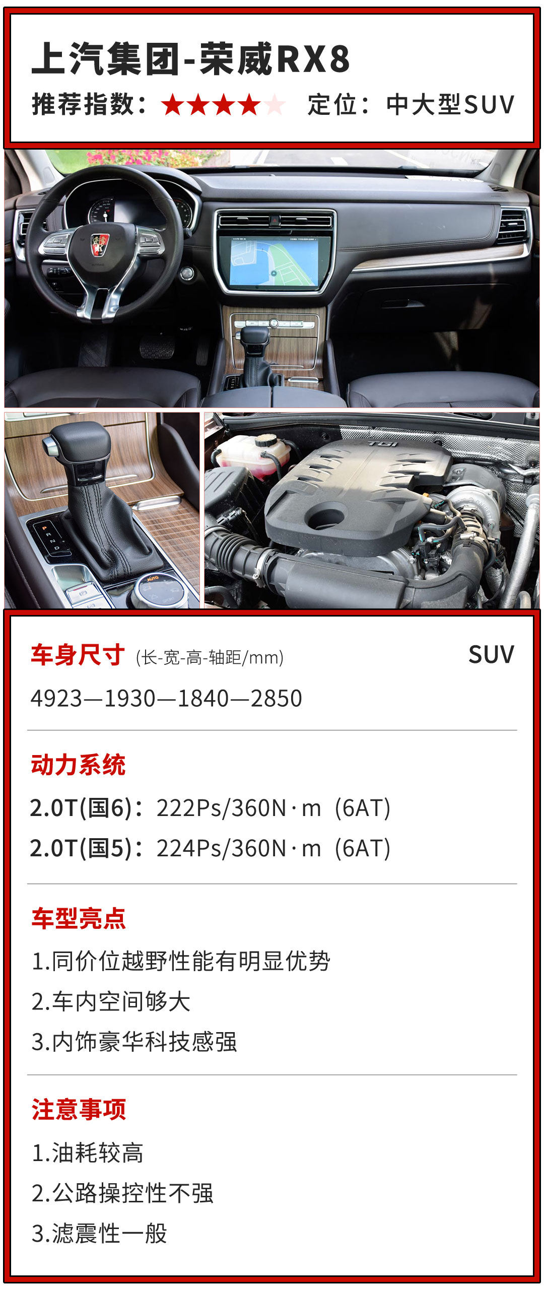 总之,本田CR-V有条件就最好买混动版;买荣威RX8就必须买四驱版;比亚迪唐新能源买插电混动版才是真“迪粉”;至于大众途昂,不高不低,选个2.0T高功率版刚刚好,千万别退而求其次买低功率版哦!