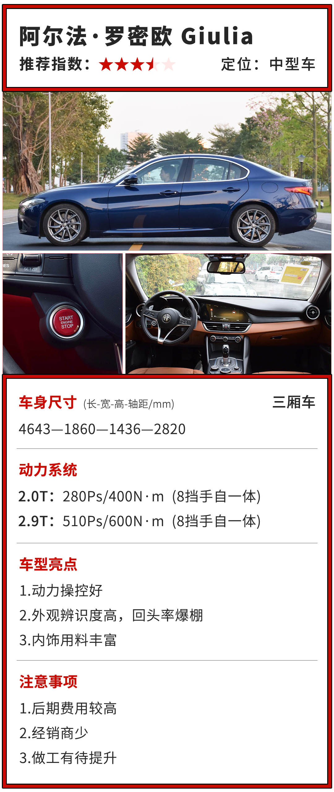 作为“偏科生”,在日常使用性以及经济型,显然并不能兼顾。尽管是百年车企,但在内饰的做工上还是相当的粗糙,旋钮的阻尼感和扎实度都有待提升,以及车内空间也相当的狭小,与同级别竞争对手相比要逊色不少。还有,后期的维修保养费用过于高昂是它的槽点所在,再加上小毛病繁多,也是不少消费者对它却步而止的原因。