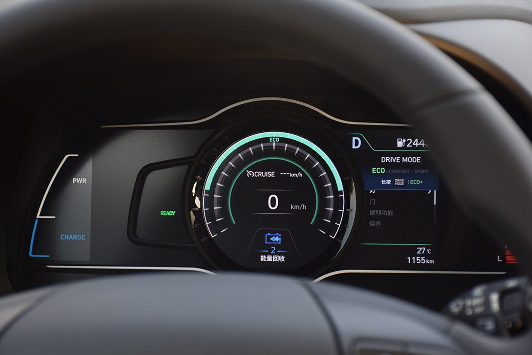 通过按下驾驶员右侧的DRIVER MODE按键,可进行ECO+、ECO、NORMAL和SPORT四种驾驶模式的切换。不同驾驶模式下,能量等级回收也会自动设置为默认状态,此时可根据驾驶习惯进行手动调节。