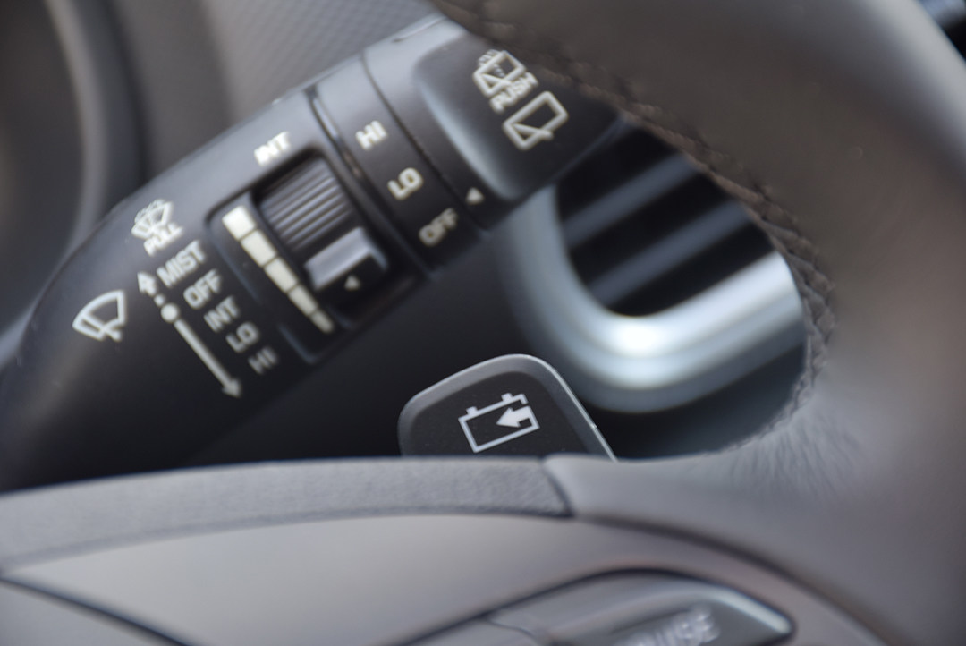 该车还配备了拨片,不过昂希诺EV另辟蹊径的做法是左侧拨片+挡实现对能量回收等级的增加,右侧拨片-挡则是减少能量回收等级,在长按拨片的情况下,可以实现对车辆的单拨片制动。