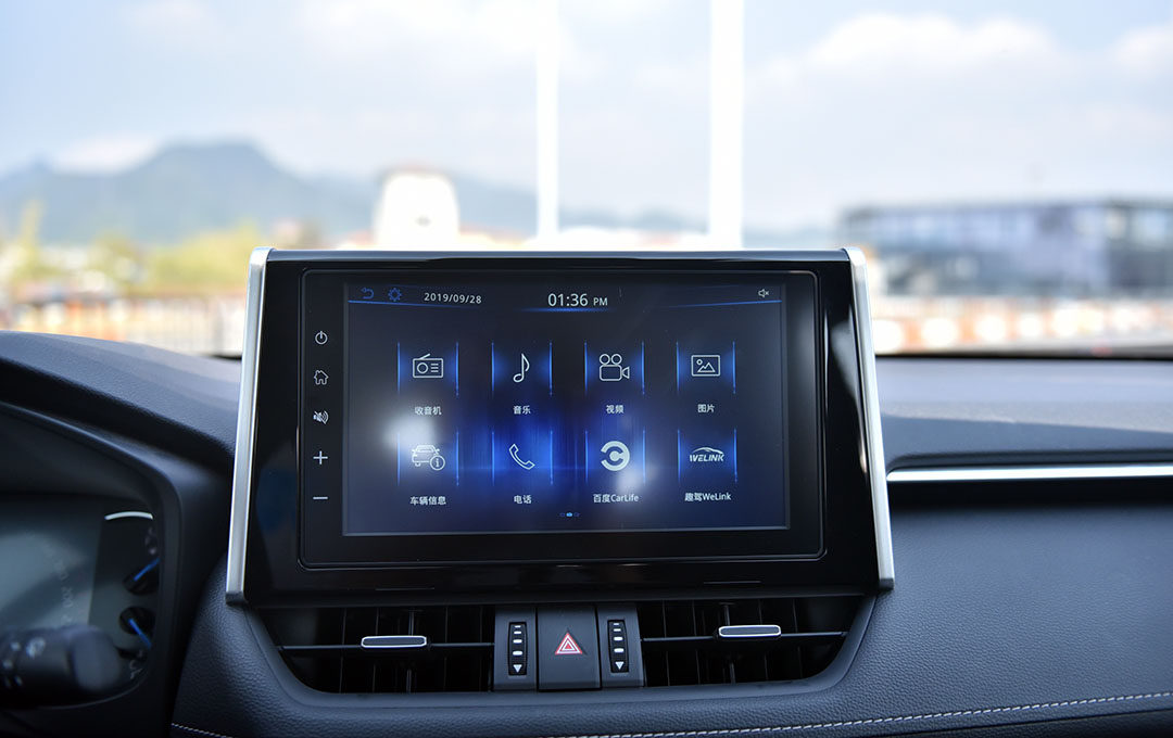 中控的8英寸大屏幕是一个视觉亮点,但是设计上与内饰格调有点格格不入,边框太大,分辨率不是很高,尤其是显示倒车影像的时候很容易暴露出来。不过功能的划分明显直观,反应速度也还算跟得上,只不过在整体的功能性和扩展性上与目前主流的车机系统相比还是稍显落后。
