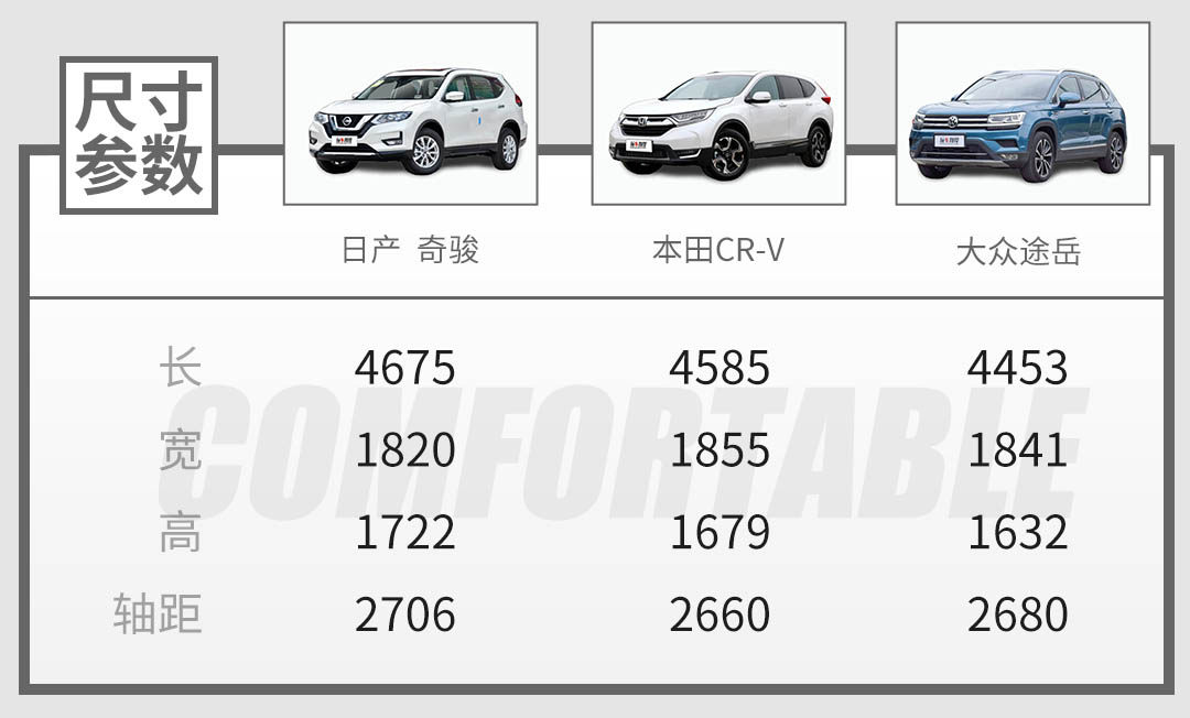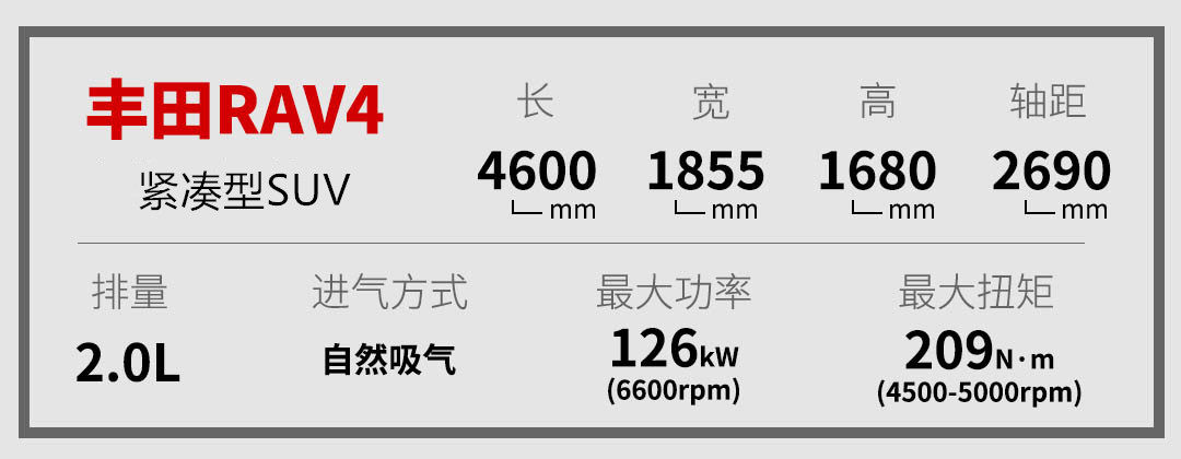 尺寸方面,全新一代的RAV4长宽高分别为4600/1855/1680mm,轴距达到了2690m,相对于旧款车型来说宽度和轴距都有所增加,而TNGA架构偏驾控,所以在车身高度方面降低了10mm。