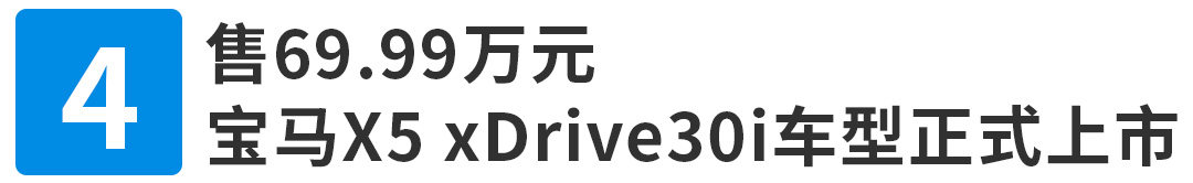 近日,宝马X5 xDrive30i车型正式上市,推出两款配置车型,售价均为69.99万元。新车在外观与内饰设计语言上与在售车型并无太大区别,但外观首次提供了X设计套装,该套装包括风格粗犷的前后包围、底部防护板和镀铬脚踏板等。动力上,新车搭载最大功率265马力的2.0T发动机,匹配8速手自一体变速箱。