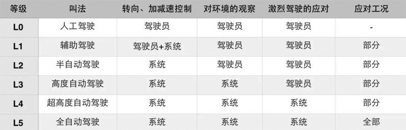 L5级别:完全自动化:无需人类驾驶,直到有需要时才切换至人工模式。