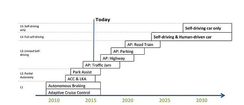 “解放双手”固然放了不少新手车主跟女司机。尽管是这样,人们对驾驶辅助的认知还是浅尝辄止。美国汽车工程学会的老大们将目前驾驶辅助技术一共分为5个等级。