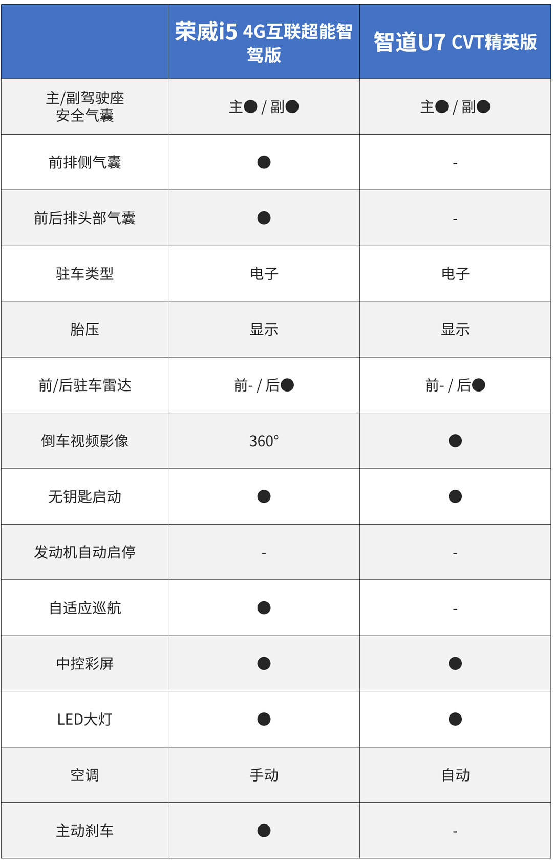 看完这两车之后我们可以总结十万国产车一定要有什么配置。首先中控大屏是一定要有的,LED大灯也要有,这两个配置是跟合资车区分的地方,倒车影像和无钥匙启动/进入国产车也是一点也不吝啬,此时在座椅材质上国产车大都采用皮质,而合资车都是织物。