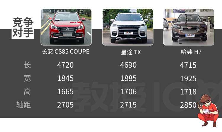 如果仅从尺寸数据上来讲,国产车中少有对手能和唐匹敌,唐的轴距达到了2820mm。但是国人买车不仅只从空间这个方面考虑,所以你会看到它的竞争对手是上面那些车型。