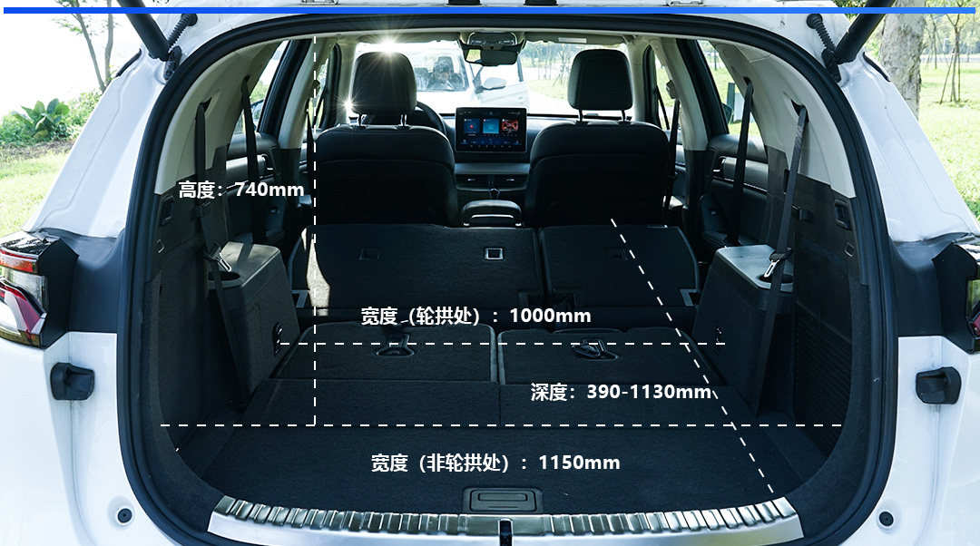 如果只用到两排座椅,后备厢的空间可以说很大了,有1130mm的进深,把第三排座椅立起来,深度就只剩下了390mm,放大一点的行李箱会比较吃力。