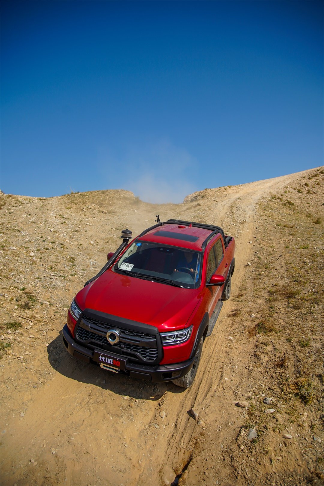 去阿拉善的中途路段,咱们来到了贺兰山脚下的一块砂石场地进行试驾体验。在这块场地上,有爬坡、沟坎以及平整的砂石路面,长城炮都能很好地完成各种高难度的越野项目。