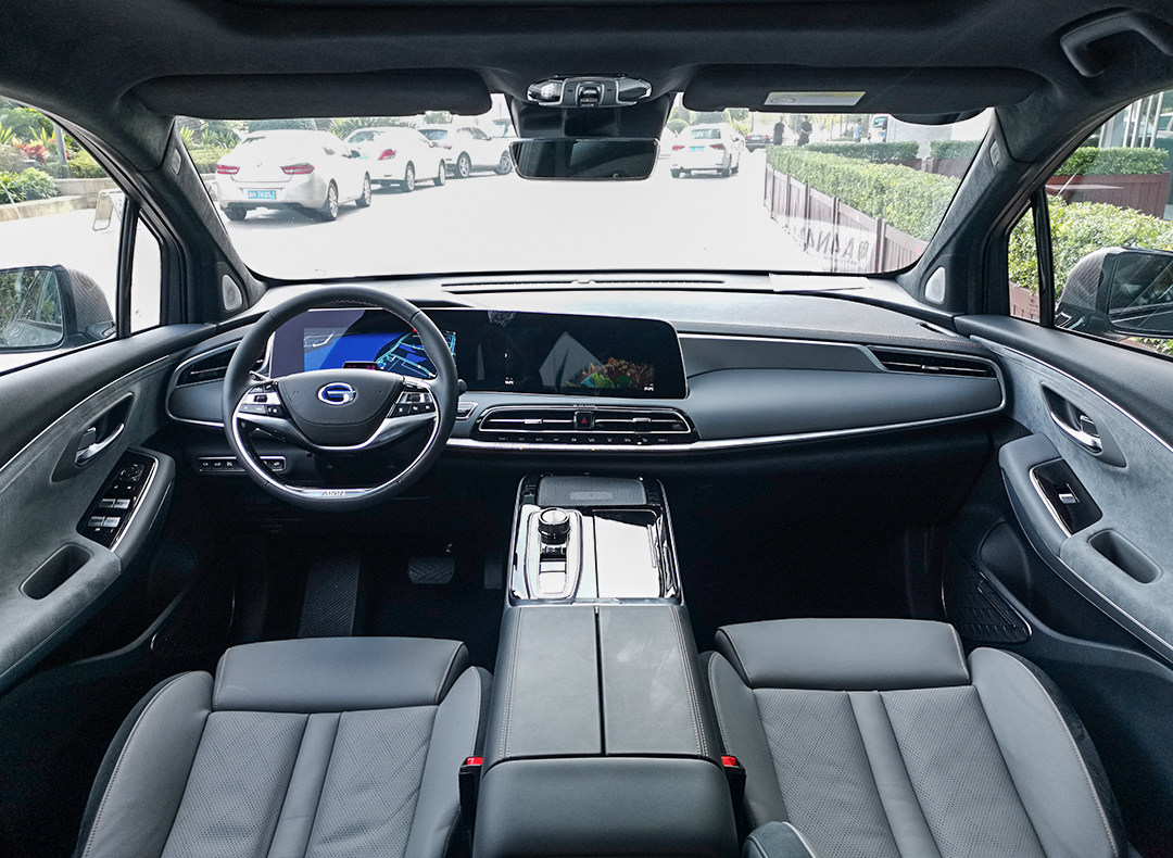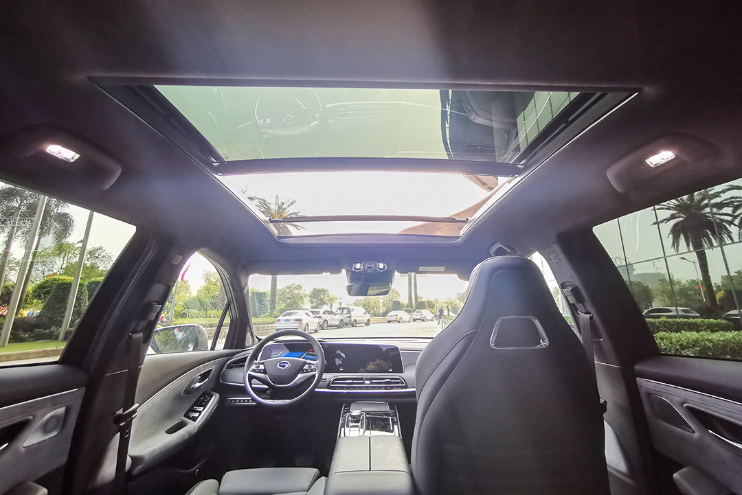 如你所见,全景天窗面积大得不像样,辅以不高的窗线以及没有侵占过多透光面积的A柱,Aion LX表现出同级拔群的通透率与采光面积,绝对是容易晕车的长辈的福音。