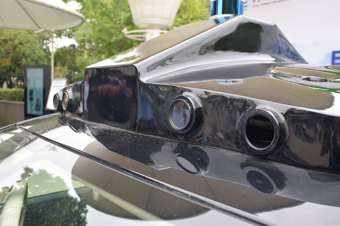 根据工程师讲述,在这个“小书包”上搭载了4个激光雷达、4个摄像头、5个毫米波雷达以及一个高精度GPS已达到对路面行车、行人进行追踪,预测的功能。而由于是后期改装车辆,所以以“小书包”的形式搭载于车顶部位。