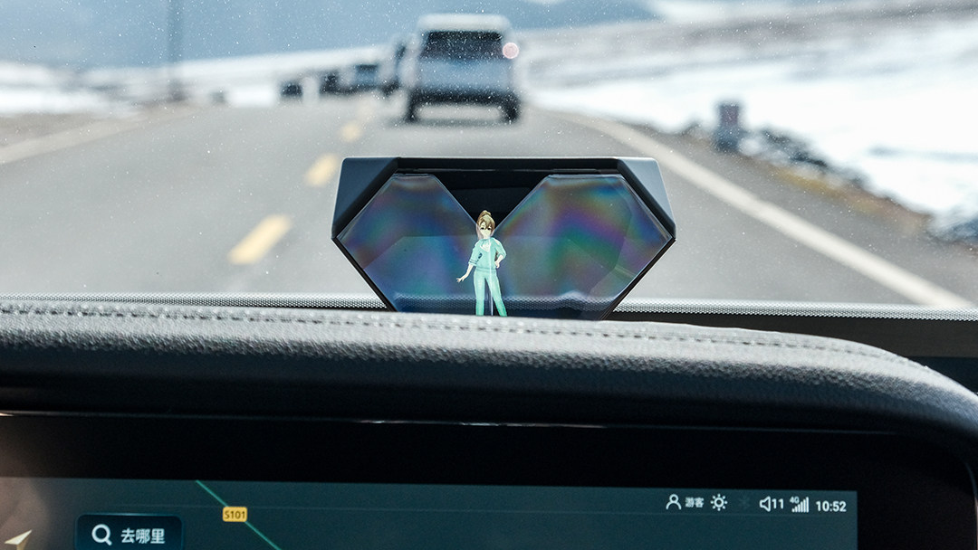 另外比较新颖的是中控台上的那个全息投影美少女Yomi,经过教授的多番探讨,当然你使用语音控制、播放音乐等功能是她会有相应配合的动作,比如拉小提琴或者打招呼,其他就没什么了,反正它的作用仅仅是观赏,或者是摆设。