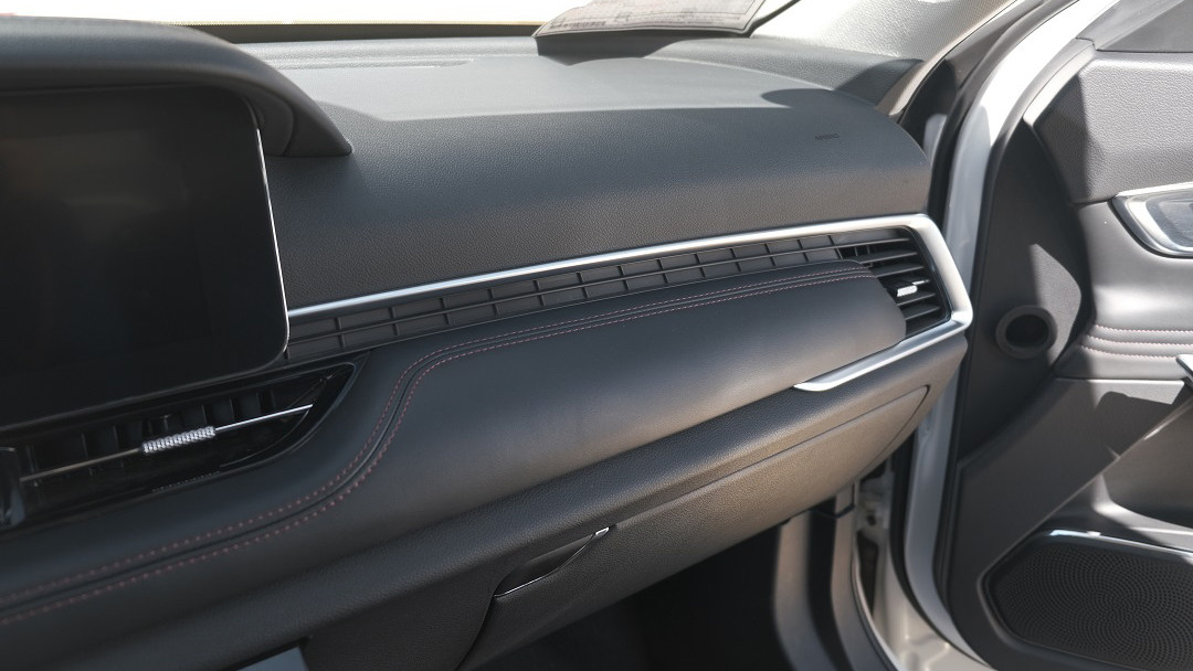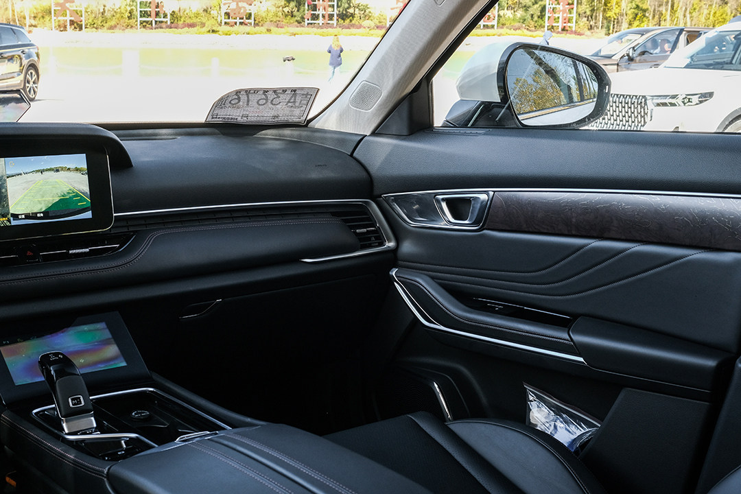 当然,在车内你还是能够感受到以往自主品牌熟悉的“三板斧”—用料足、配置高、大空间。用料真的无可挑剔,门板、中控、扶手,手能够触及到的地方,基本都是软包裹,外加缝线装饰,还有木纹饰板装饰,虽然成本所限,装饰的不是真皮或者是实木,但整一个用料,给人摸起来、看起来、体验的感觉都是很到位的,给人很满足的感觉,也能感受到满满的诚意。