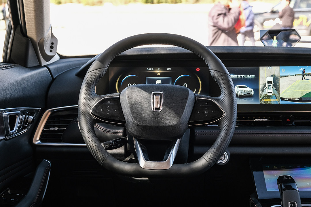 再细看,就连方向盘的按键都像是改为触控控制了吗?!一上手则发现,其实不然,多功能方向盘两侧的控制键其实是实体按键,面板相似触控,实际按下去是实体,