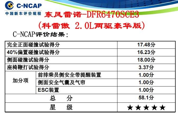 两者选取的车型不一样,这就涉及到配置上的差异,不过C-IASI测试结果显示,科雷傲的车身结构仅得到了M等级,从而影响到了车顶强度和正面碰撞成绩。而车型为2.0L豪华版的科雷傲在C-NCAP 获得了五星评价,而且正面碰撞、侧面碰撞的成绩尤为出色。舒适版和豪华版在结构上会差那么多吗?其中的弯弯绕绕相信大家也能理解了。