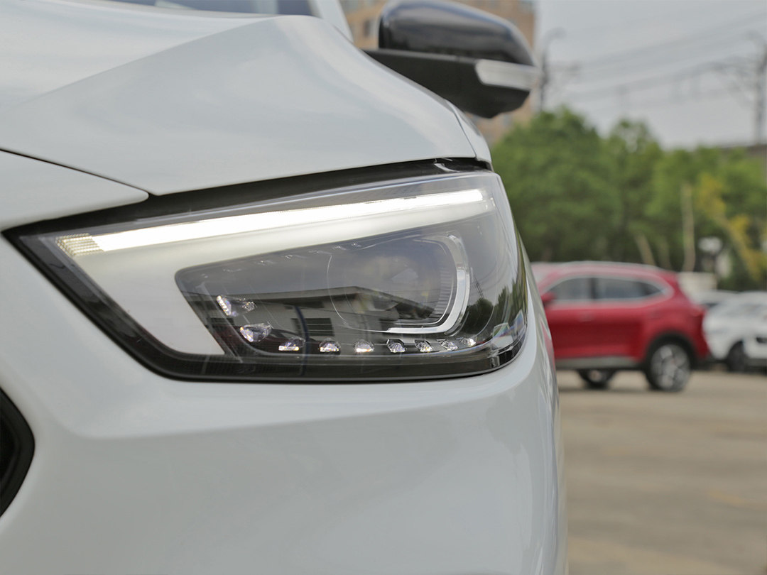 箭头式大灯组的设计灵感据说来自英国银石赛道,有向赛道运动致敬的意思。大灯组内部采用了熊黑的处理,视觉上挺犀利。试驾车型采用了LED远近光灯,据悉这一配置是全系标配。