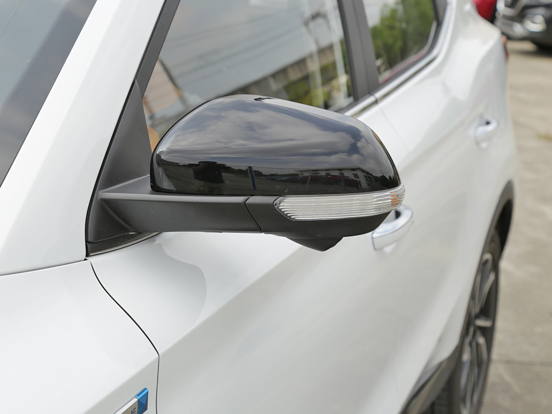 亮黑色的后视镜颇具运动风格,在下方集成有360度全景影像的摄像头。