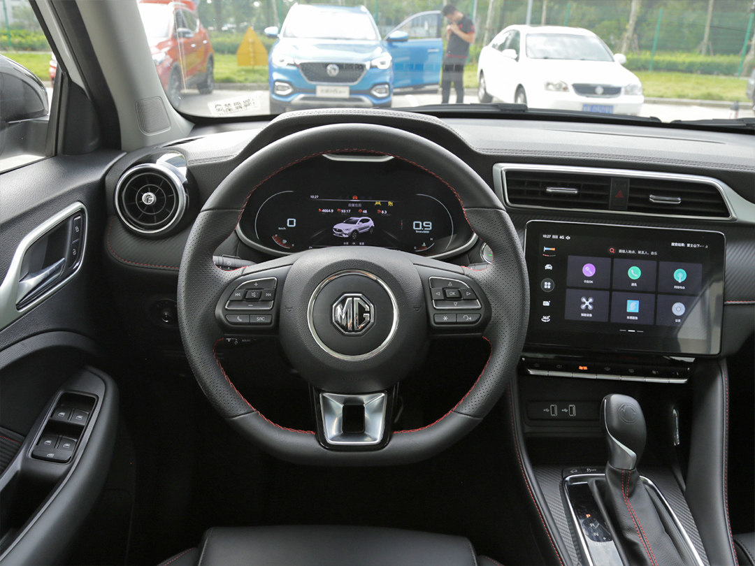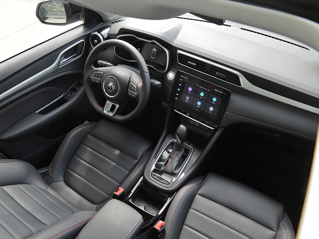 全新名爵ZS采用了环抱式的座舱设计,操作界面向驾驶者一侧倾斜。中控台采用了大面积的软性材质包裹,在座椅、方向盘、挡把、中控台上运用了大量的红色缝线,营造出不错的运动感。