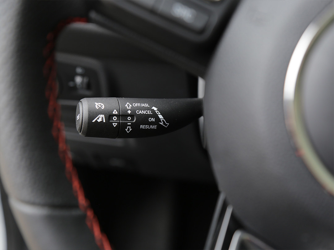 在方向盘左下角设置了MG PILOT L2 智能主动驾驶辅助系统和自适应巡航的控制拨杆,通过拨杆的上下拨动就能开启相应功能,而前后拨动拨杆就可以设置巡航速度,操作简单易上手。但因为拨杆的位置比较靠近灯光拨杆,所以容易误操作,需要一定的适应时间。
