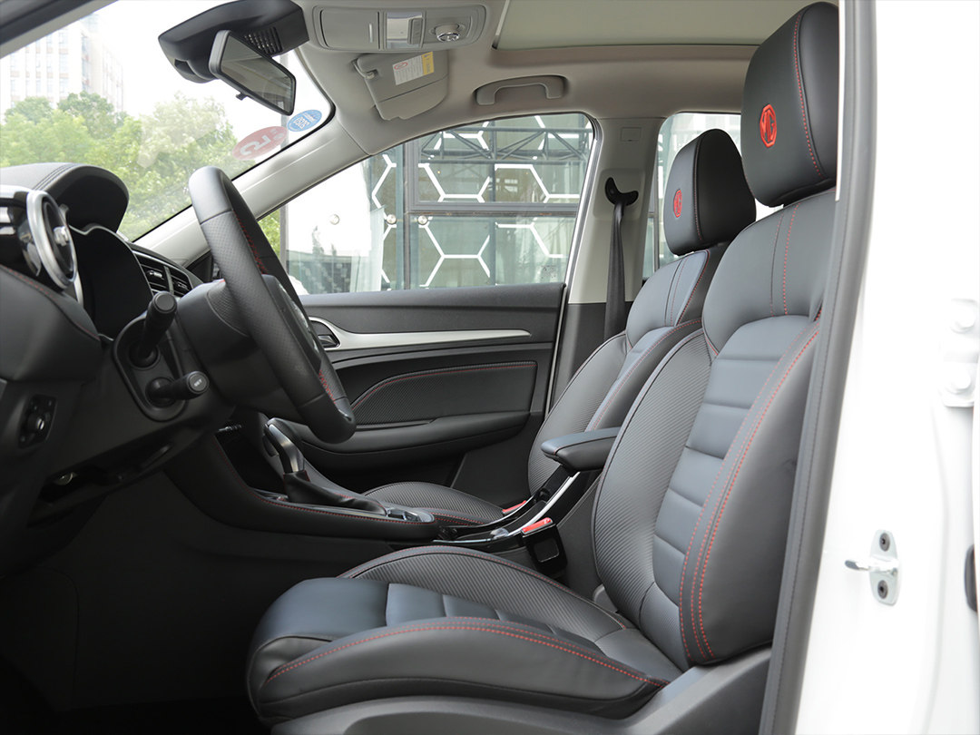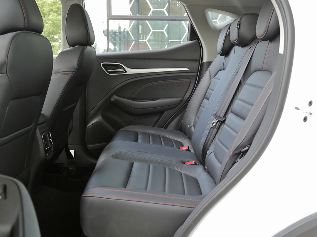 座椅采用了黑色皮革包裹,并且搭配了红色缝线,内部的填充物软硬适中,支撑性不错。作为顶配车型,前排主驾驶座椅支持电动调节,不过副驾驶座椅只支持手动调节。