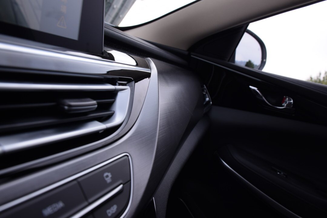 并且空调面板和以及延伸下去的换挡挡把位置,采用了钢琴烤漆面板,门扶手上也采用了拉丝工艺的饰板,营造了较为豪华的氛围。