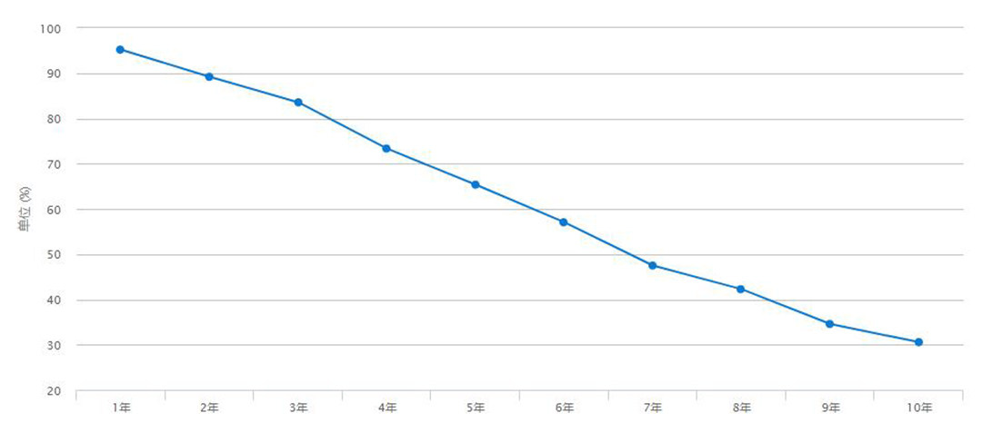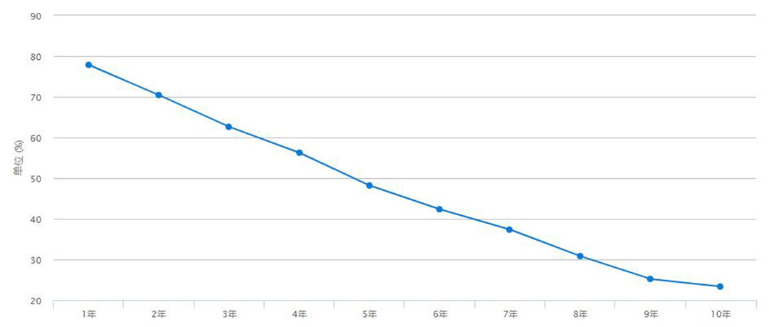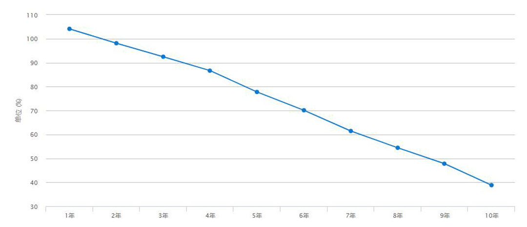 第一年,我们可以看出是破天荒的突破了100%,其中存在着一定加价的因素。但作为一辆带有“社会标签”的车,往后的保值率,也都要比同年份的车要高出不少。