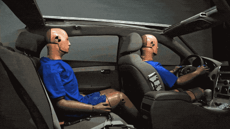 而且后排不系安全带真的发生碰撞,对于前排乘客的威胁也会很大。