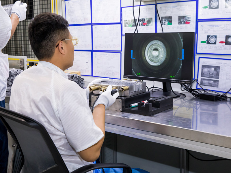 放大35倍的阀孔内窥镜检测:作为变速箱的核心部件,阀体在生产完成后,还要经过内窥镜下放大35倍的人工视觉检测,让成品的质量可靠性在99.99%的基础上再进一步,杜绝产品缺陷溢出。