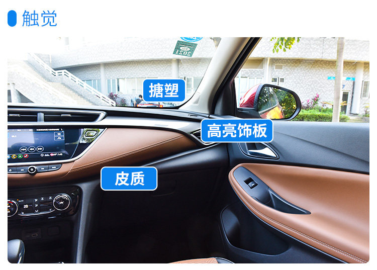 搪塑-纹路饰板-皮质,由上到下这样的布局比较有层次感,而且中控台大部分位置摸起来都是软的,手感较好。同一时期我们还测试了本田XR-V,昂科拉GX在内饰的质感上要比它好太多了。