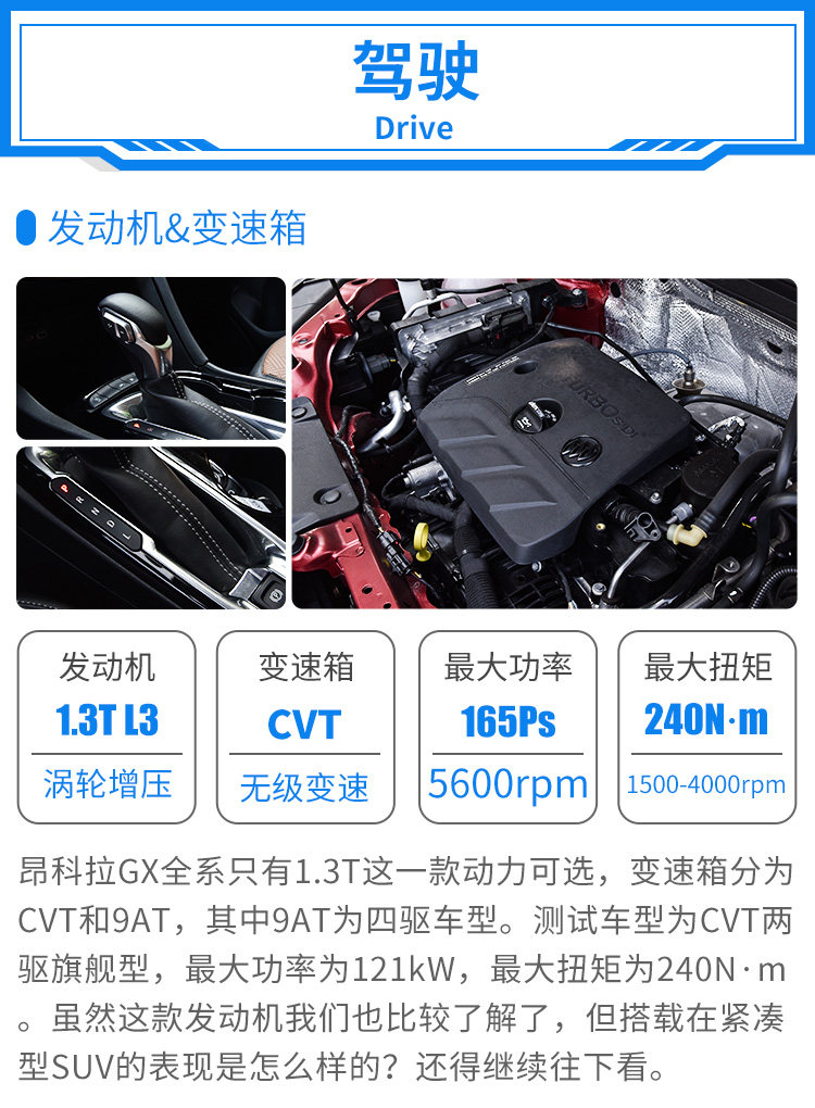 如果我的使用场景只是由家到公司这段距离,是个安安稳稳的上班族,那么昂科拉GX与我是很契合的,它只需要轻松好开就足够了,空间、内饰等各方面都比较居家。但如果我骨子里不安分,驾驶偏激烈,那么昂科拉GX就没那么好了,中后段动力不足是个原因,而且它的转向也没那么灵敏,高速过弯时信心不足。它的这些不足正是本田XR-V的优点,好在两者之间有用料、空间等卖点上的差别,不然昂科拉GX又增一强敌。