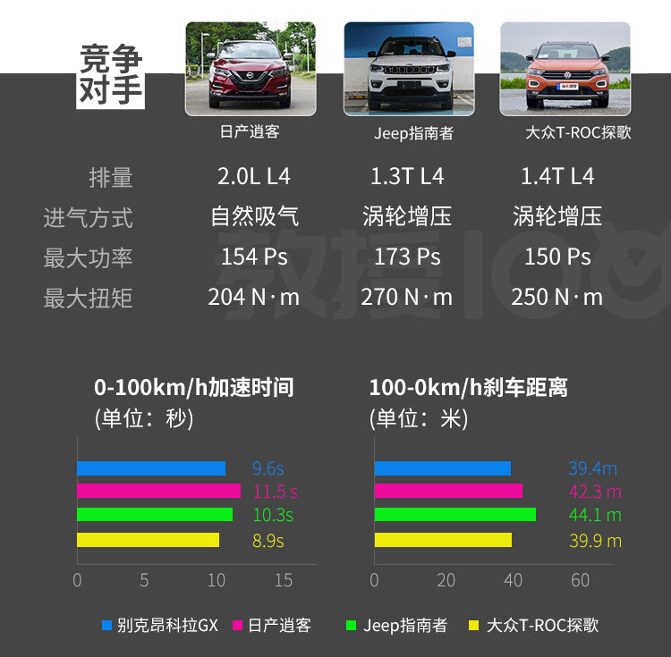昂科拉GX的尺寸、动力与紧凑型SUV中热门车型,如CR-V、RAV4、途岳等,相比并不占优势。它的对手是逍客、指南者、探歌等车型,昂科拉GX各方面都与它们较为接近,凭借着别克的品质,鹿死谁手还未可知。