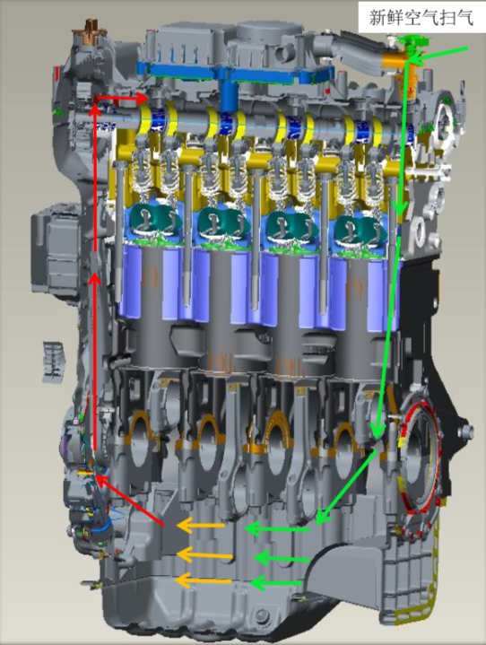 最后发动机总工程师特意提到机油稀释和乳化的解决方案,冷车启动时,由于曲轴箱的温度比较低,这时气缸内的高温气体遇冷会从气态变成液态。第三代2.0T发动机,采用了曲轴箱强制扫气系统,气温启动时,直接往曲轴注入新鲜空气,然后将里面的冷空气带入发动机内燃烧。由于篇幅限制,广汽第三代发动机就聊到这里。