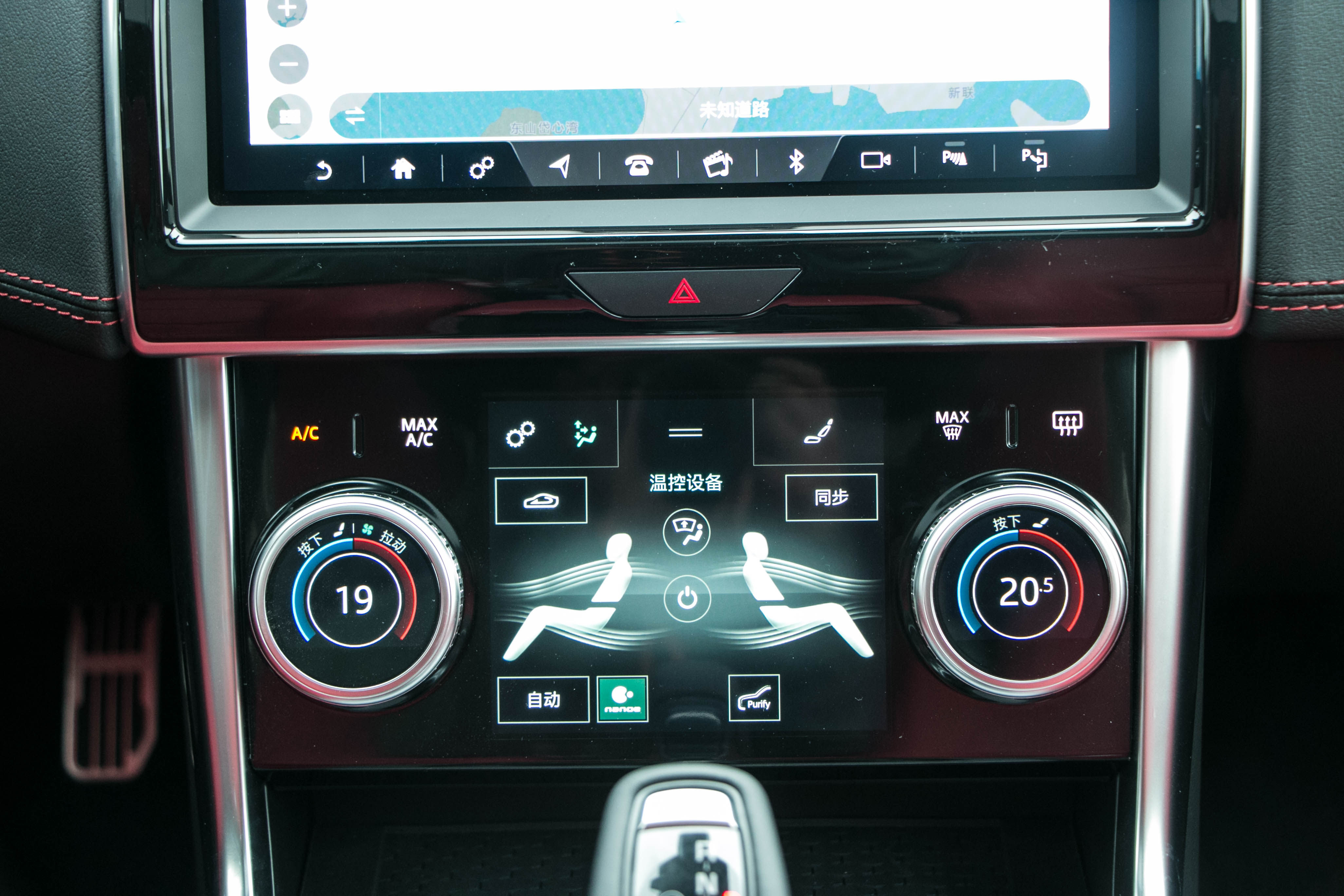 中控台区域主要在下方进行优化,剔除了繁杂的实体按键,取而代之的是5.5英寸的触摸屏。在功能性上,10.2英寸的中控屏则是匹配了与I-PACE共享的Jaguar Touch Pro Duo信息娱乐系统,提供了CarPlay和Carlife的讨好配置。在实际使用中,其UI设计、触摸反馈以及功能使用较之老款都有很大的提升。