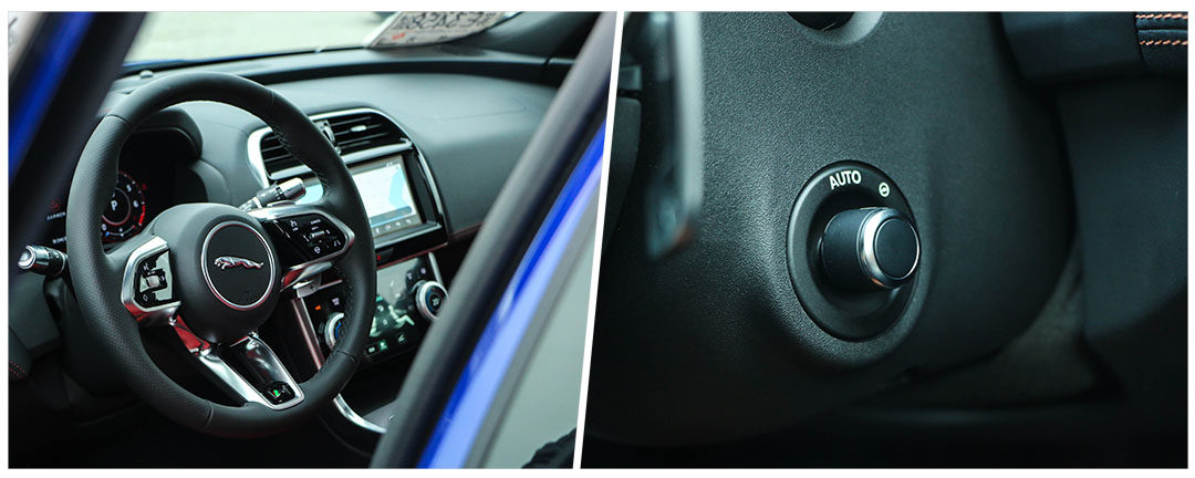 虽然新车的内饰基本维持现款车型的设计走向,但有几个显著的变化。新车换上了I-PACE的三幅式方向盘,粗壮的方向盘更有跑车的韵味,加大的换挡拨片让驾驶者更有驾驶的欲望。在便利性方面,方向盘的电动调节也取代了往前的手动调节模式。另外,方向盘匹配了触敏式按键和滚轮操作按键,实际操作的质感反馈也尤为不错。