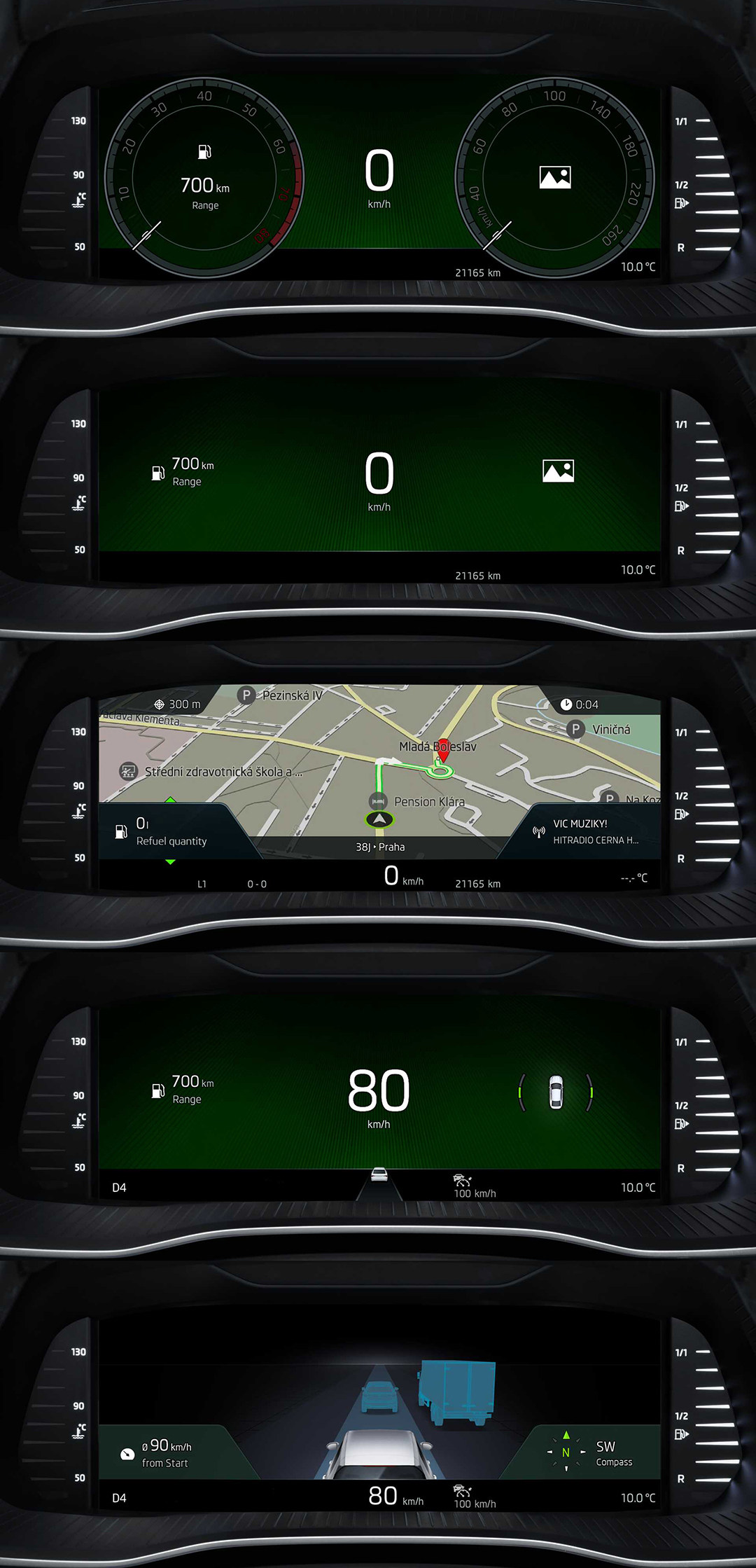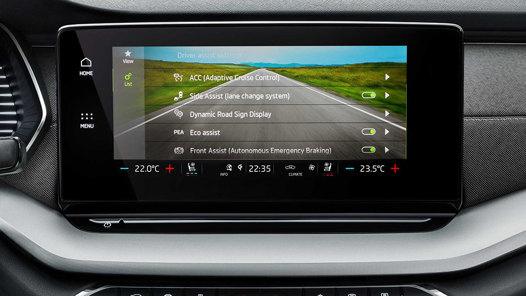 此外,内饰的变动也是巨大的,第五代明锐的内饰设计完全跟上了时代潮流。首先双辐式方向盘的出现就是一个惊喜;有人说斯柯达这是为了随大流,毕竟现在越来越多新车采用双辐式方向盘了。但是在教授看来,除了紧跟潮流之外,双辐式方向盘的出现也在某种层面上代表着对初代车型的致敬;尽管这个双辐式方向盘看起来就像一个普通三幅式方向盘砍掉了一块,看着有点别扭。