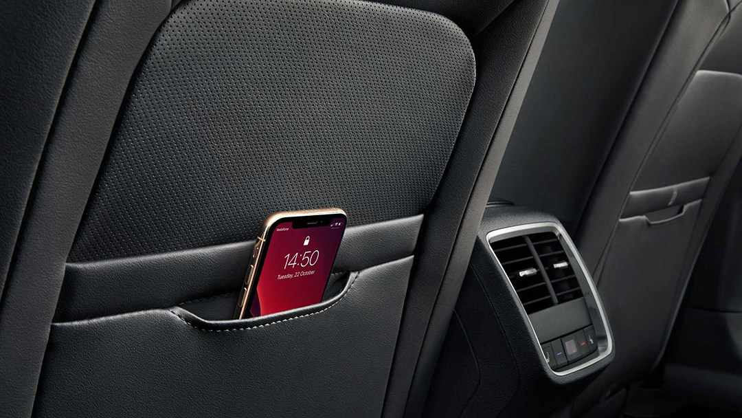 前排座椅背部还有这样贴心的小设计,方便后排乘客放置手机。