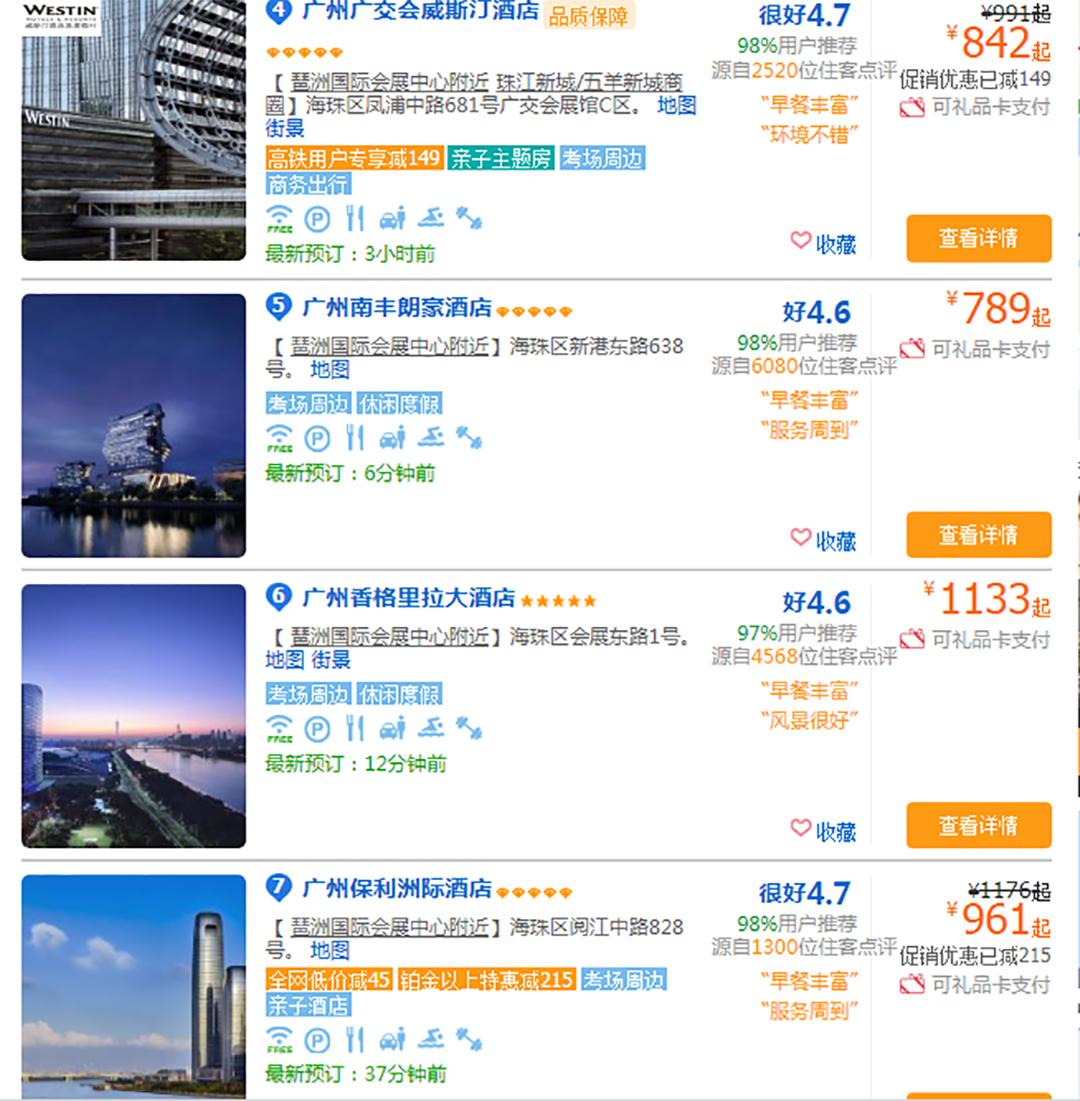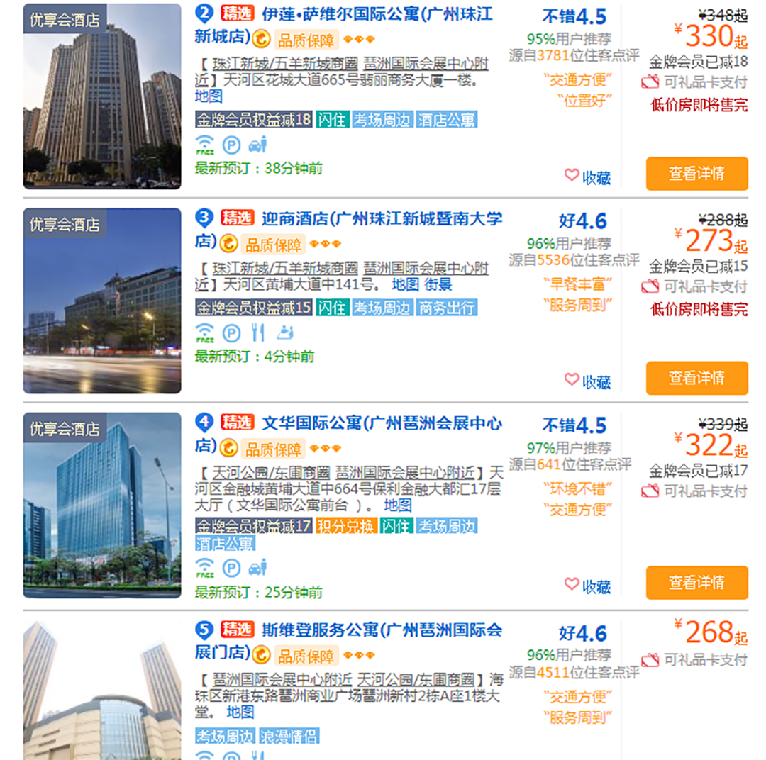 在场馆周边的住宿也是非常多选择的,教授在这里比较推荐上面的4家酒店,距离展馆都是非常近的,基本步行5分钟就能到,虽然在价格上会相对偏高,但是在房间里就能看到珠江两岸的景色还是非常美丽的。