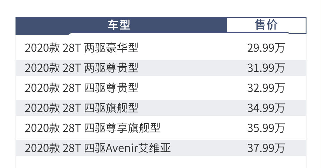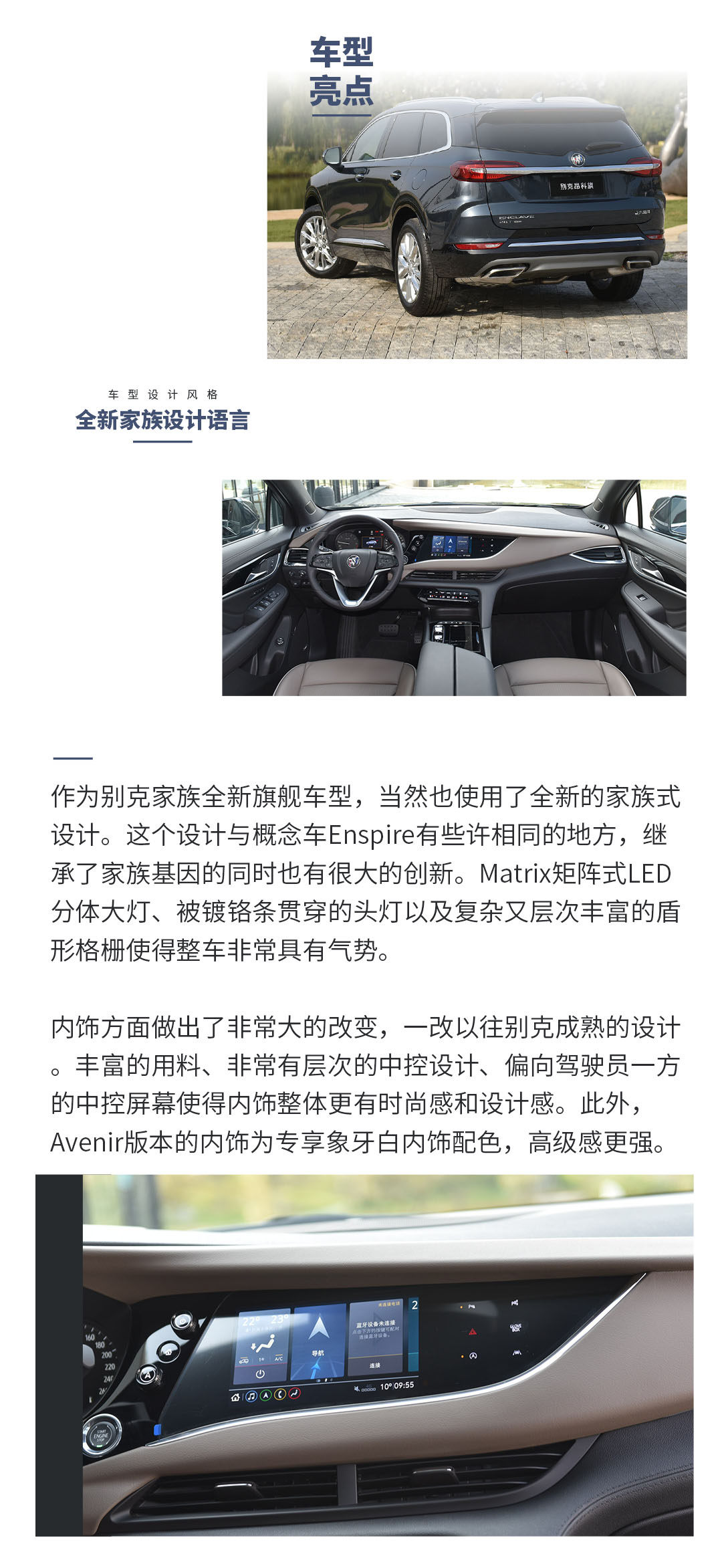 全新昂科旗于11月20日晚正式上市,新车售价29.99-37.99万元,共有6款车型。其中,两款两驱、三款四驱以及一款Avenir艾维亚特别设计版。普通版本车型全系标配7座,而Avenir艾维亚版车型则采用6座布局,第二排拥有两个头等舱座椅。