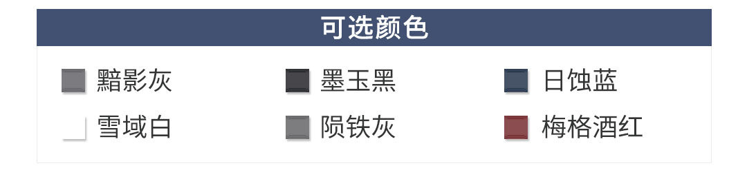 可选颜色方面,共有6种颜色,而最后一种梅格酒红则是Avenir艾维亚特别设计版车型独有。