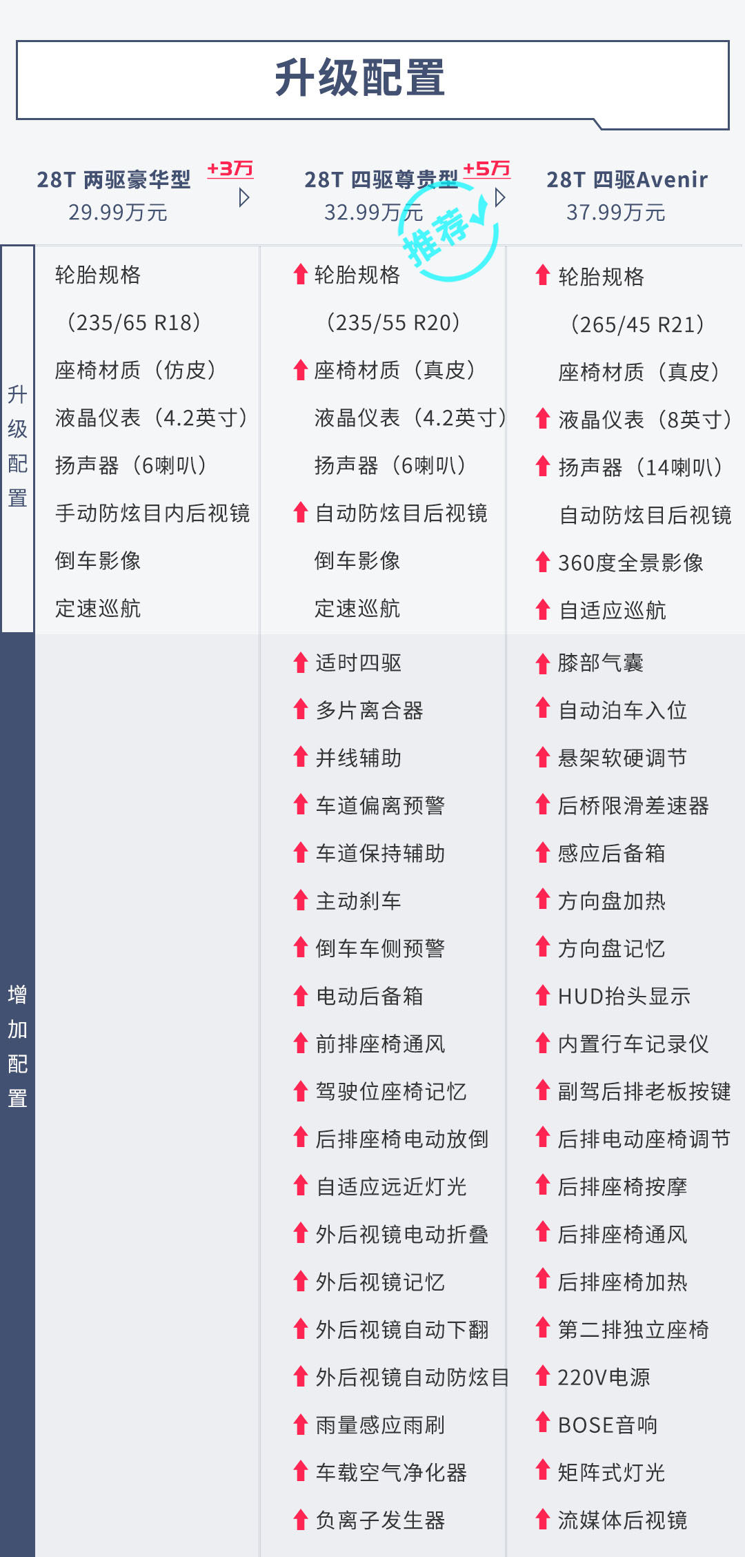 从配置情况来看,全系的标配非常丰富,入门车型基本能满足日常驾驶需求。但是,教授并不建议选择入门车型,相对于入门车型来讲,四驱尊贵型的性价比更高,一个原因是四驱系统,另外就是因为有很多的科技配置和舒适性配置了。