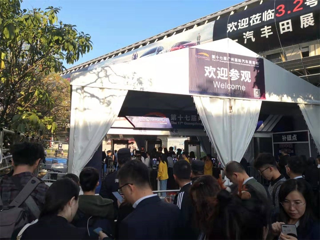 11月22日早上8点,广州国际展览中心5.1馆旁的入口已经挤满了人。车展第一天为媒体日,而这些身上挂着证件的都是媒体老师。从这些纷至沓来的人群可以看得出来,即使天气渐凉,车市遇冷,媒体老师们依旧保持着高度的热情。