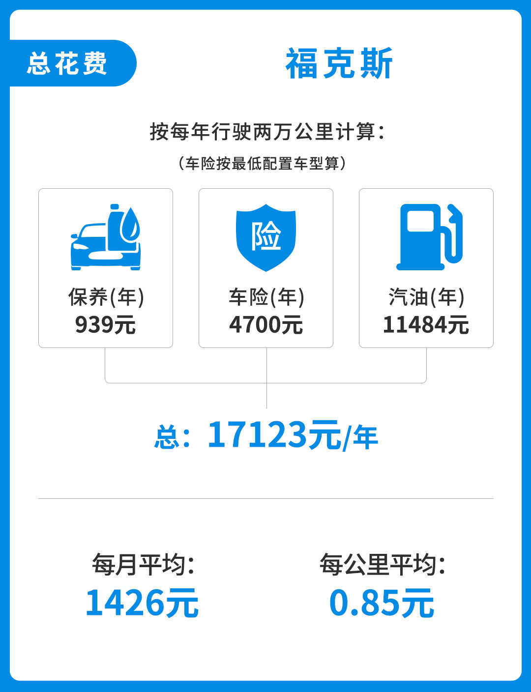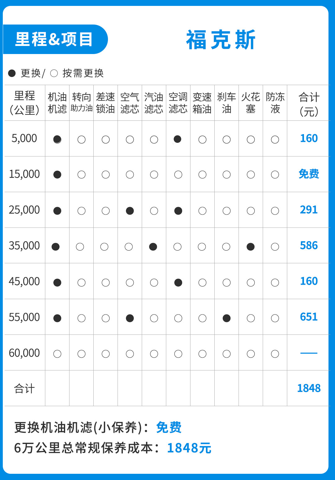 总体算下来,福克斯的养车成本与思域相差并不大,并没有因为三缸发动机而降低了保养成本,反而在油耗上相比思域要更高一点。不过,厂家最新推出的3年6次免费保养确实是一个很好的政策,能为车主省下一笔不少的费用。只是在保值率上,福克斯的数据就有点不如思域了,不知道这跟新车采用了三缸机器有多大的关系了,这一点在购车时需要多加考虑。此外,由于ST Line车型在保养上并没有与其他车型有差距,建议预算足够的用户还是选择ST Line吧,你将会获得更好的驾驶体验。