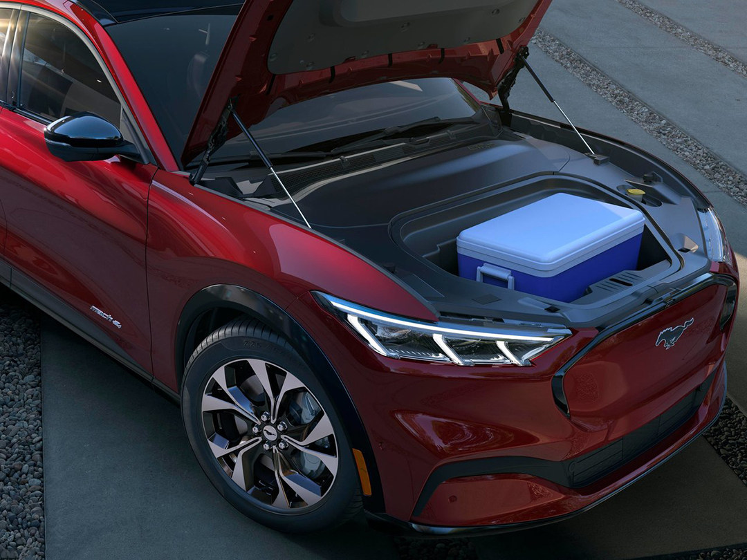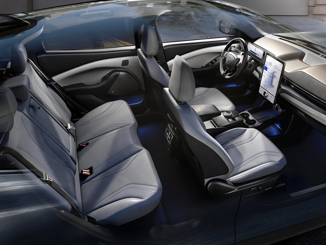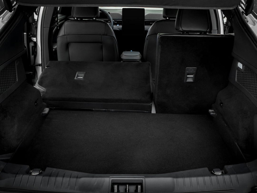 作为一台能够容纳5个人的纯电SUV,MUSTANG Mach-E宽体的设计,让其拥有更加充足的后排空间跟储物空间。后备箱容积821升,后排放倒后容积扩充至1677升,另外,得益于全新的动力系统设计,MUSTANG Mach-E的前盖下还隐藏着136升容积的前备箱,还有可排水的设计,为贴合家用的装载需求添砖加瓦。