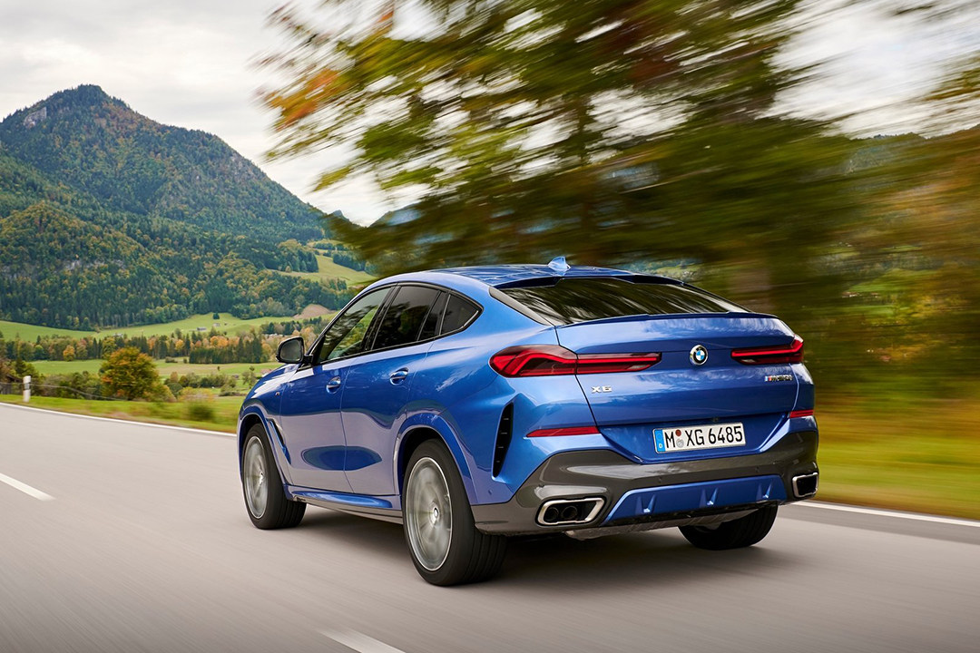 宝马X6刚刚完成换代,延续了现世代的设计风格,棱线一代比一代突出,从第一代柔润到第三代硬气而且犀利,格栅是历代最大尺寸的,极具视觉冲击力,下方的扰流孔尺寸也同步加大,全新的M套件设计运动感更上一层楼。