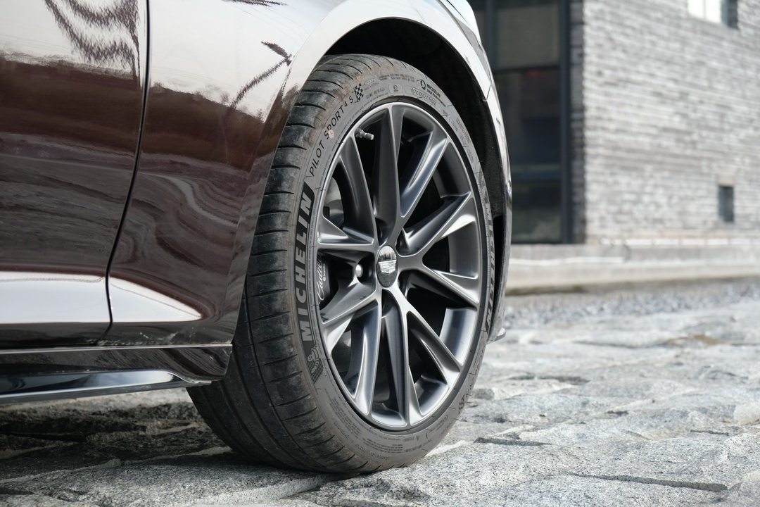 在轮毂方面,运动版的车型采用了哑光枪灰色的轮毂,搭配的轮胎是规格为245/40 R19的米其林PS4S运动型轮胎。