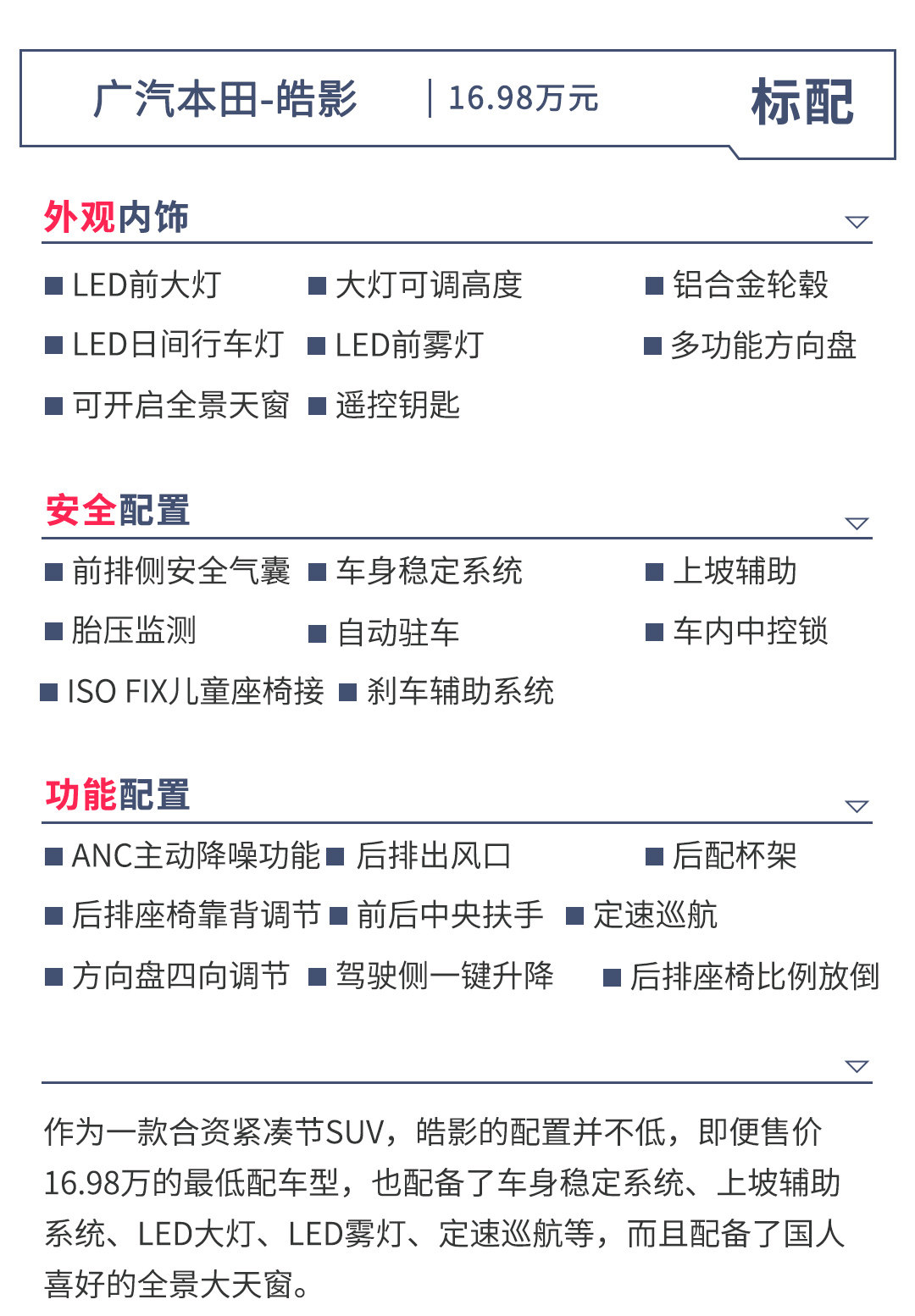 皓影的上市弥补了广汽本田在紧凑型SUV市场的空白,SUV市场是近年来国内最火爆的,而紧凑型SUV又是SUV市场占比最高的,所以皓影对广汽本田意义重大。