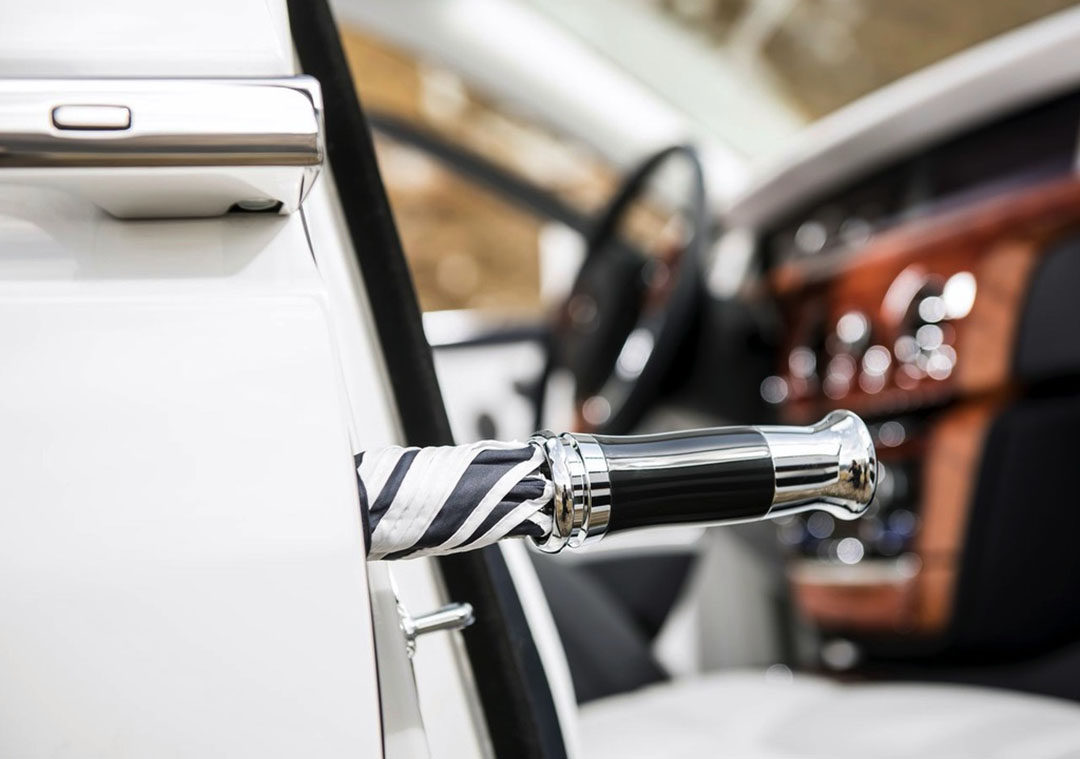 你能想象在汽车门板上还能藏着一把长柄雨伞,而在劳斯莱斯的门板上,还真藏着一把,而且还是天价。据网上流传,这把刻有劳斯莱斯标志的雨伞价值高达10万元,相当惊人,具体价格是否真实,在此就不作深究了,反正知道它很贵就ok了。